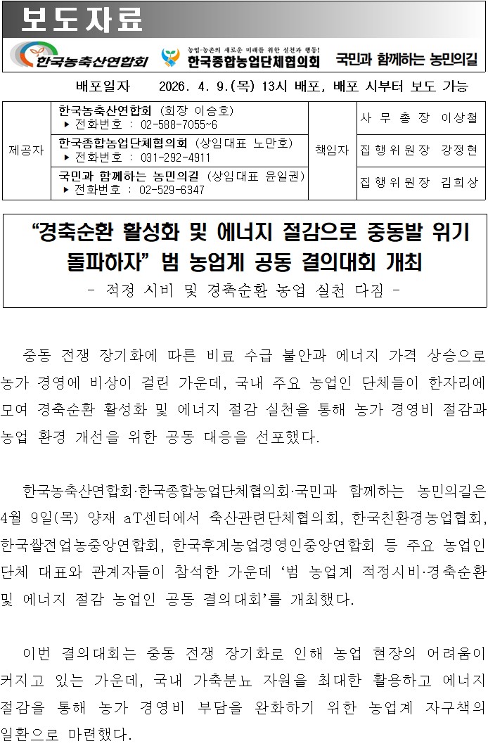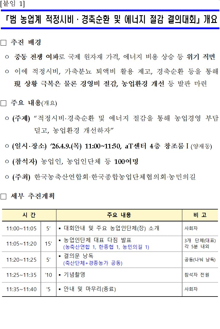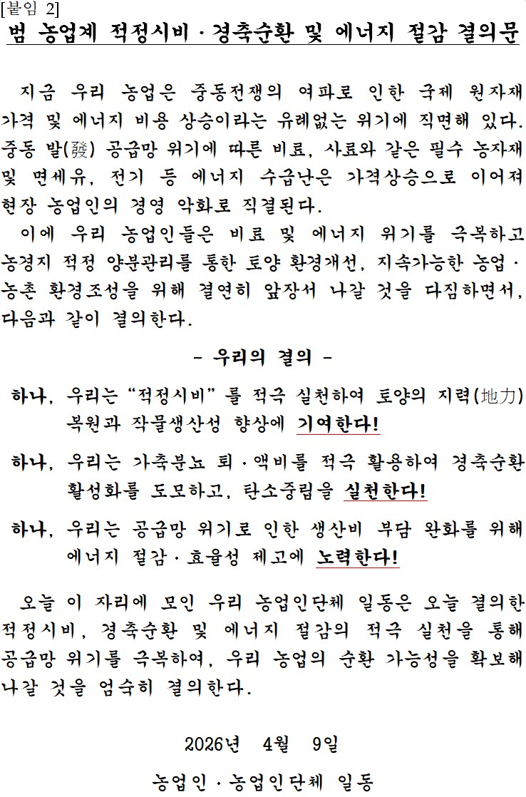 | ÷ºÎÆÄÀÏ | 260409 ³ó¹Î´Üü °øµ¿ º¸µµ(¡°°æÃà¼øÈ¯ Ȱ¼ºÈ....pdf [ºÙÀÓ1]°áÀÇ´ëȸ °³¿ä.pdf [ºÙÀÓ2]°áÀǹ®.pdf |