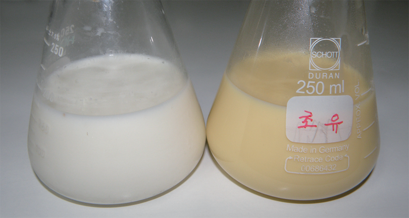 ¾î¹ÌÀÇ Á¥À» ¸ÔÀ» ¼ö ¾ø´Â ¼Û¾ÆÁö¸¦ À§ÇÑ ºÐ¸»·Î µÈ ºÐÀ¯°¡ ÀÖ½À´Ï´Ù. ¾î¹Ì Á¥ÀÇ ¿µ¾ç¼ººÐ°ú ºñ½ÁÇÑ °ÍÀ¸·Î À̸¦ ´ë¿ëÀ¯(milk replacer, ÓÛéÄêá)¶ó°í ÇÕ´Ï´Ù. ´ë¿ëÀ¯´Â ÀüÀ¯(îïêá)¸¦ ´ëüÇϱâ À§ÇÑ °ÍÀ¸·Î, ÀüÀ¯ÀÇ ¼ººÐ¿¡ ±ÙÁ¢µÇµµ·Ï Á¶Á¦µÈ °ÍÀ̾î¾ß ÇÕ´Ï´Ù. ´ë¿ëÀ¯ ¹èÇսà °¡Àå Áß¿äÇÑ °ÍÀº ´Ü¹éÁú °ø±Þ¿øÀÇ ¼±ÅÃÀε¥, Å»ÁöºÐÀ¯, ÀüÁöºÐÀ¯, À¯ÀåºÐÀ¯, ÄÉÀ̽Å(casein) µî À¯Á¦Ç°ÀÌ °¡Àå ¿ì¼öÇϰí, ±× ´ÙÀ½À¸·Î´Â ³óÃà Äá ´Ü¹éÁú µîÀÌ¸ç ¾îÁó, ¾îºÐ, ¸ÆÁÖÈ¿¸ð µîÀº À̿뼺ÀÌ ¶³¾îÁý´Ï´Ù. ±×¸®°í ¿¡³ÊÁö¿ø À¸·Î¼´Â À¯´ç(êáÓØ, lactose)À̳ª Æ÷µµ´çÀÌ ÀüºÐ(starch)À̳ª ÀÚ´ç(í½ÓØ, sucrose)º¸´Ù ´õ È¿°úÀûÀÔ´Ï´Ù. ÀüÀ¯¿¡¼ ´ë¿ëÀ¯·Î ±³Ã¼ÇÒ ¶§¿¡´Â 3~4ÀÏÀÇ ¿©À¯¸¦ °¡Áö°í ¼¼È÷ ¹Ù²Ù¾î ÁÖ¾î¾ß Çϸç, ±Þ¿©½Ã ´ë¿ëÀ¯¸¦ ¹°°ú È¥ÇÕÇÏ´Â ºñÀ²Àº ù° ÁÖ¿¡´Â 1 : 9, µÑ° ÁÖ ºÎÅÍ´Â 1 : 7~8·Î ¹°¿¡ Àß ¿ëÇØ½ÃÄÑ 37¡É Á¤µµ¿¡ ¸ÂÃç ±Þ¿©ÇØ¾ß ÇÕ´Ï´Ù.