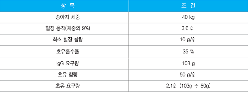 <Ç¥1-3> ¼Û¾ÆÁöÀÇ »ý½ÃüÁߺ° ÃÊÀ¯ ¿ä±¸·® °è»ê (¿¹)