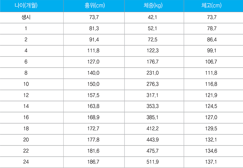 ¼Û¾ÆÁö°¡ žÀ» ¶§º¸´Ù 2¹è·Î ÀÚ¶ó´Âµ¥ ¼Ò¿äµÇ´Â Àϼö´Â ¾à 90ÀÏ ÀÔ´Ï´Ù. ¼Û¾ÆÁöÀÇ Ãâ»ý½Ã üÁßÀº Æò±Õ 42kg Á¤µµÀ̸ç, ¾Ï¼Û¾ÆÁö´Â 30¡45kg, ¼ö¼Û¾ÆÁö´Â 40¡60kg Á¤µµ·Î ÀϹÝÀûÀ¸·Î ¼ö¼Û¾ÆÁöÀÇ Ã¼ÁßÀÌ ´õ Å®´Ï´Ù. »ýÈÄ 3°³¿ùÀÌ µÇ¸é 2¹è ÀÌ»óÀ¸·Î ÀÚ¶ó°í 6°³¿ùÀÌ µÇ¸é 4¹è ÀÌ»ó, 4°³¿ùÀÌ µÇ¸é 8¹è ÀÌ»óÀ¸·Î ÀÚ¶ó Æò±Õ 350kg ÀÌ»óÀÇ Á¤»óÀûÀÎ ¾î¸¥¼Ò°¡ µË´Ï´Ù. ÀÌ·¸°Ô 14°³¿ù ÀÌ»óÀ̸ç üÁßÀÌ 350kg ÀÌ»óÀÎ ¼Ò¿¡°Ô´Â ¼ºÀûÀ¸·Î ¼º¼÷µÈ ¾î¸¥¼ÒÀÇ ÀÚ°ÝÀ» ÁÖ¾î ÀÓ½ÅÀ» ½ÃŰ°Ô µË´Ï´Ù.