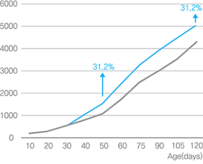 ±× È¿°ú´Â °üÇàÆ÷À¯¹æ¹ý¿¡ ºñÇØ ÀÌÀ¯´Ü°è¿¡¼ÀÇ ¼Û¾ÆÁöÀÇ °íÇü»ç·á ¼·Ãë·®ÀÌ 31% ÀÌ»ó Çâ»óµÇ°í, üÁßÀº 35% ÀÌ»ó Çâ»óµÈ °ÍÀ¸·Î ³ªÅ¸³µÀ¸¸ç, ¹ÝÃßÀ§ÀÇ ¹ß´Þµµ 33% ÀÌ»ó Áõ°¡µÇ¾î ÀÌÀ¯ ÈÄ 4°³¿ù±îÁöµµ °üÇàÆ÷À¯ÀÇ ¼Û¾ÆÁö º¸´Ù ¼ºÀå´É·ÂÀÌ ÈξÀ ´õ Çâ»óµÈ °°ÇÇÑ À°¼º¿ì·Î À°¼ºµÈ °ÍÀ» ¾Ë ¼ö ÀÖ¾ú½À´Ï´Ù.