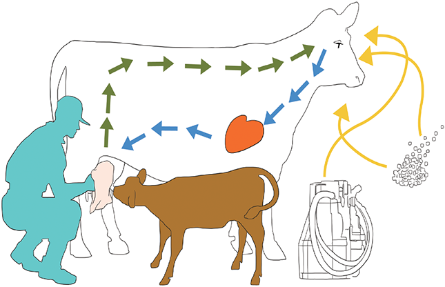 À¯ÁóÀ» ¹èÃâÇϰí ÀÖ´Â µ¿¹°À» ³î¶ó°Ô Çϸé À¯¹æÀÇ ³»¾ÐÀÌ ¶³¾îÁ® À¯ÁóÀÇ ¹æÃâÀÌ ÀúÇØµÈ´Ù. À̰ÍÀº µ¿¹°ÀÌ ³î¶ó°Ô µÊ¿¡ µû¶ó ºÎ½Å¼öÁú¿¡¼ ¿¡Çdz×ÇÁ¸°(epinephrine)ÀÌ ºÐºñµÇ°í, ÀÌ ¿¡Çdz×ÇÁ¸°Àº Ç÷°üÀ» ¼öÃà½ÃÄÑ À¯¹æÀ¸·Î °¡´Â Ç÷¾×·®À» °¨¼Ò½ÃÅ´À¸·Î½á ±Ù»óÇǼ¼Æ÷¸¦ ¼öÃà½ÃŰ´Â µ¥ ÃæºÐÇÑ ¾çÀÇ ¿Á½ÃÅä½ÅÀÌ À¯¹æ¿¡ µµ´ÞµÇÁö ¸øÇϱ⠶§¹®ÀÌ´Ù.
