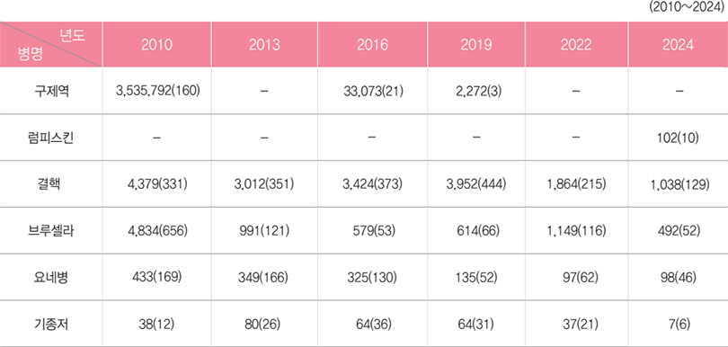 <Ç¥10-3> ±¹³» ÁÖ¿ä ¿ìÁ¦·ù °¡ÃàÀü¿°º´ ¹ß»ýÇöȲ