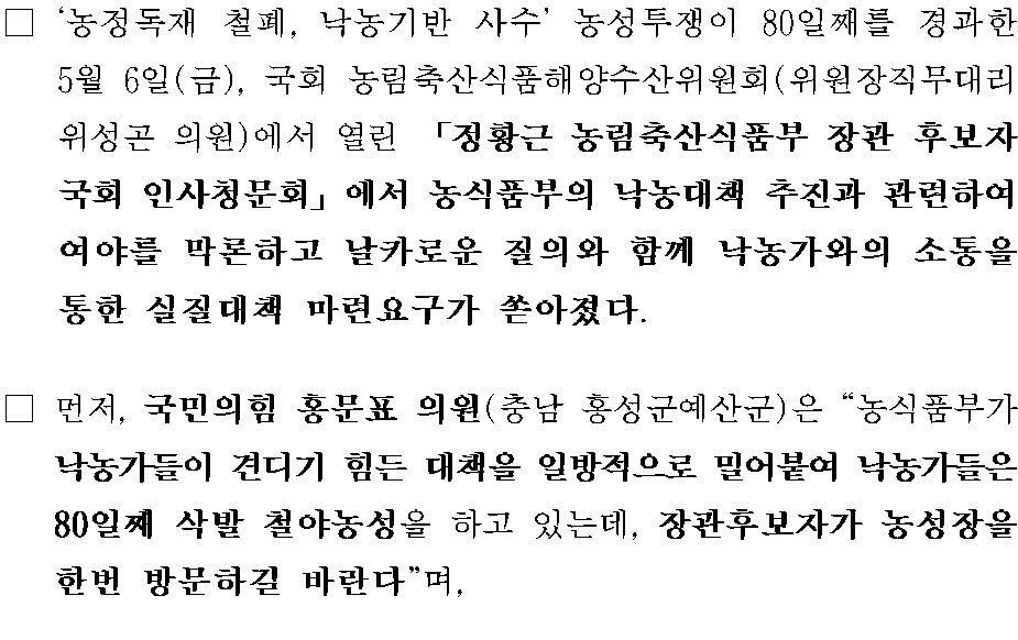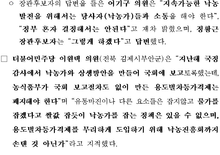 | [ÅõÀï¼Óº¸25]¿©¾ß ÀÇ¿øµé, "»óÀÓÀ§ ÁöÀûÀ» ¹«½ÃÇϰí, ³«³ó°¡¸¦ ¹èÁ¦ÇÑ ÀϹæÀû ³«³ó´ëÃ¥ ÃßÁø Áß´ÜÇØ¾ß" | |||||||