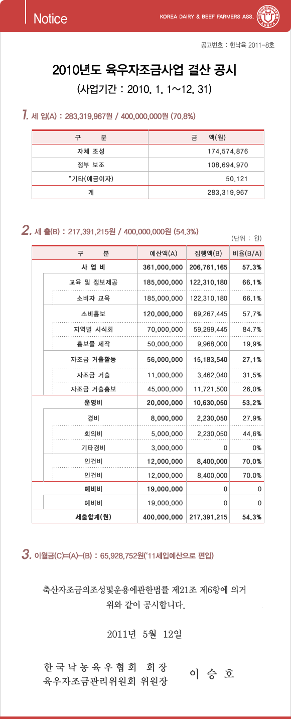 | 2010³âµµ À°¿ìÀÚÁ¶±Ý»ç¾÷ °á»ê °ø½Ã | |||||||
