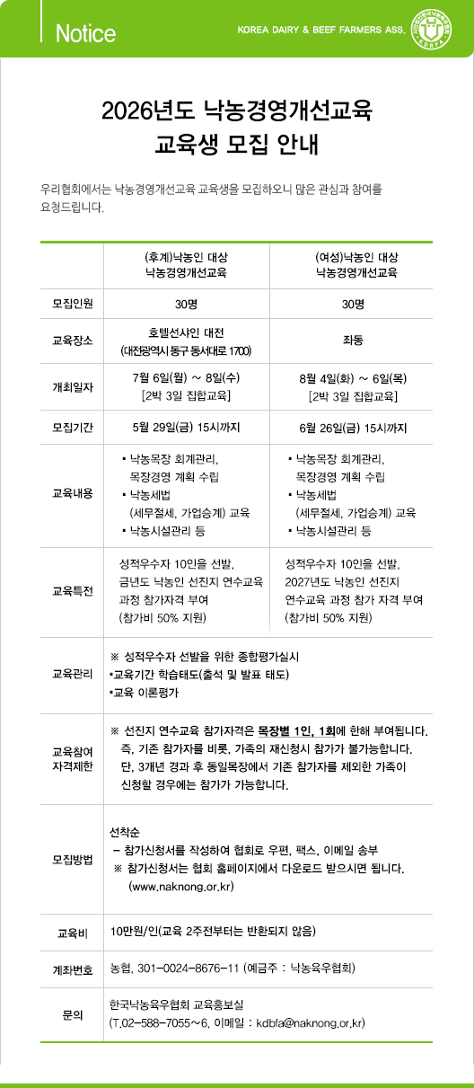 | [°øÁö]2026³âµµ ³«³ó°æ¿µ°³¼±±³À° ±³À°»ý ¸ðÁý ¾È³» | |||||||