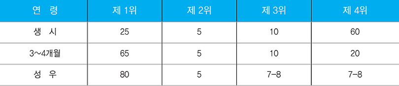 <Ç¥1-3> ¼Û¾ÆÁöÀÇ »ý½ÃüÁߺ° ÃÊÀ¯ ¿ä±¸·® °è»ê (¿¹)