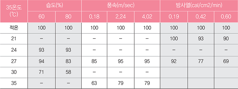 1) °í¿Â½Ã¶õ »ó´ë½Àµµ 60%¿¡¼´Â ÀÏ Æò±Õ±â¿Â 26¡ÉÀÌ»óÀ¸·Î ÇÏ°í »ó´ë½Àµµ 70%À̻󿡼´Â ÀÏ Æò±Õ±â¿Â 24¡É ÀÌ»ó