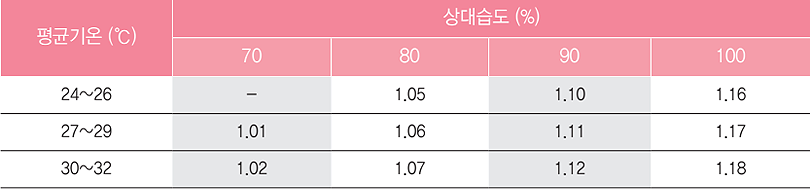 <Ç¥2-9> ÂøÀ¯¿ìÀÇ °í¿Â ½Ã °Ç¹°¼·Ãë·®ÀÇ º¸Á¤°è¼ö