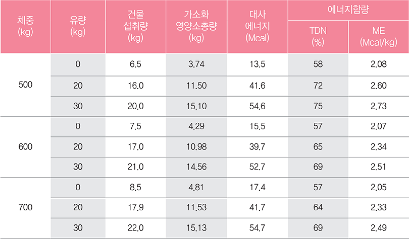 ºÐ¸¸ ÈÄ ÃÖ°í À¯·®ÀÇ µµ´ÞÀº 4~5ÁÖÁ¤µµ ÀÓ¿¡ ºñÇÏ¿© °Ç¹°¼·Ãë·®Àº 8~10ÁÖ ¶§ ÃæºÐÇÑ ¼öÁØ¿¡ ´ÞÇÏ°Ô µË´Ï´Ù. ÀÌ ½Ã±âÀÇ Á¥¼ÒÀÇ ¿µ¾ç¼Ò ±ÕÇüÀº À½(-)ÀÇ »óŰ¡ µÇ°í, ÇÊ¿äÇÑ ¿µ¾ç¼ÒÀÇ ÀϺθ¦ ü Á¶Á÷¿¡¼ µ¿¿øÇÏ¿© º¸ÃæÇÏ°Ô µÇ´Â °ÍÀÔ´Ï´Ù. ±× °á°ú, °íºñÀ¯½ÃÀÇ Ã¼Áߺ¯È´Â ºÐ¸¸ ÈÄ 3~4ÁÖ°±îÁö ±Þ°ÝÈ÷ °¨¼ÒÇϰí Áõ°¨ ¾øÀÌ À¯ÁöÇÏ´Ù°¡ 10ÁÖ °æºÎÅÍ È¸º¹ÇÏ°Ô µË´Ï´Ù. üÁß¼Õ½ÇÀÇ Çã¿ë¹üÀ§´Â ´ë·« 50kg Á¤µµ·Î ½ÅÃ¼Ãæ½ÇÁö¼ö(BCS)·Î¼ 1.0 À̳»ÀÇ °¨¼Ò°¡ Àû´çÇÕ´Ï´Ù. ¿¡³ÊÁö ¿ä±¸·®À¸·Î¼´Â üÁß°¨¼Ò ¶§´Â ü Á¶Á÷À¸·ÎºÎÅÍ 1kg´ç 8.25 Mcal(DE)°¡ º¸±ÞµÇ°í, üÁß È¸º¹½Ã¿¡´Â ¿ªÀ¸·Î 8.55 Mcal(DE)°¡ ¿©ºÐÀ¸·Î ÇÊ¿äÇϱ⠶§¹®¿¡ ¿µ¾ç¼Ò°ø±Þ Â÷¿ø¿¡¼ ÀÌ·¯ÇÑ Á¡À» ¿°µÎ¿¡ µÑ Çʿ䰡 ÀÖ´Â °ÍÀÔ´Ï´Ù. ±×·¯³ª ½ÇÁ¦ »ç·á±Þ¿© ½Ã °í ºñÀ¯½Ã±â¿¡´Â ü Á¶Á÷À¸·ÎºÎÅÍÀÇ µ¿¿øÀ» ±â´ëÇÏÁö ¸»°í ÃÖÀû ¿µ¾ç¼ÒÇÔ·®ÀÇ »ç·á¼³°è¸¦ ÇÏ¿© Àû±ØÀûÀ¸·Î °Ç¹°¼·Ãë·®À» ´Ã¸®´Â °ÍÀÌ Áß¿äÇÕ´Ï´Ù. »ç·á±Þ¿©Ã¼°è, ±Þ¿© Ƚ¼ö ¹× ¼ø¼¸¦ °ËÅäÇÔ°ú µ¿½Ã¿¡ ºÐ¸¸ÀüÈÄÀÇ »ç¾ç°ü¸®¿¡ ´ëÇØ¼ ¹Ù¸£°Ô ÀÌÇØÇÏ°í ½ÇõÀ» ÇÏ´Â °ÍÀÌ Áß¿äÇÏ¸ç ºÐ¸¸½ÃÀÇ °ú´ÙÇÑ ºñ¸¸À» ¹æÁöÇØ¾ß ÇÕ´Ï´Ù.