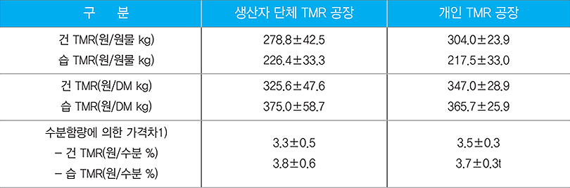 <Ç¥4-1> ±¸ÀÔ TMRÀÇ »ý»êÁ¦Ç°º° °¡°Ý°ú ¼öºÐÇÔ·®°úÀÇ °ü°è
