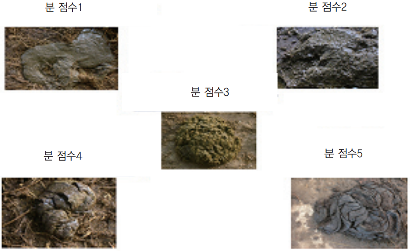 »çÀ°ÁßÀÎ Á¥¼ÒÀÇ ºÐ »óŸ¦ º¸°í °Ç°»óÅÂ¿Í ¿µ¾ç»óŸ¦ ÆÇÁ¤ÇÏ´Â µ¥ Àû¿ëÇÒ ¼ö ÀÖ½À´Ï´Ù. ºÐÀÇ »ö±òÀº »ç·áÀÇ Á¾·ù³ª ´ãÁóÀÇ ³óµµ ±×¸®°í »ç·áÀÇ Åë°úÀ²¿¡ µû¶ó ¿µÇâÀ» ¹ÞÀ¸¸ç, ºÐÀÇ °æµµ ÁÖ·Î ºÐ³»ÀÇ ¼öºÐÇÔ·®¿¡ µû¶ó ´Þ¶óÁö´Âµ¥ ÀÌ´Â »ç·áÀÇ ¼öºÐÇÔ·®°ú µ¿¹°Ã¼³»¿¡ »ç·á°¡ ¸Ó¹°·¯ ÀÖ´Â ½Ã°£¿¡ µû¶ó ´Þ¶óÁý´Ï´Ù. ºÐÀÇ °æµµ¸¦ 1(¾ÆÁÖ ¹«¸§)~5(¸Å¿ì µüµüÇÔ)´Ü°è·Î ºÐ·ùÇÒ ¼ö ÀÖ½À´Ï´Ù. ¶ÇÇÑ ºÐÀÇ ³»¿ë¹°Àº Á¥¼Ò°¡ ¼·ÃëÇÑ »ç·á¿Í ¿µ¾ç¼ÒÀÇ ¼ÒÈ ¹× À̿뼺À» ³ªÅ¸³À´Ï´Ù.