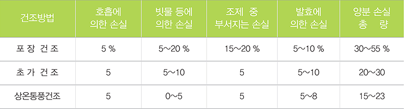 ÁÁÀº °ÇÃÊ Á¶Á¦±â¼úÀº ù° ¼öÈ®½Ã±âÀÇ ¼±ÅÃÀ̸ç 3~5Àϰ£ ºñ°¡ ¿ÀÁö ¾Ê´Â ±â°£¿¡ ¿¹ÃëÇÏ¿© °ÇÁ¶ÇÏ´Â °ÍÀÌ ÁÁ°í ºü¸¥ °ÇÁ¶¸¦ À§ÇØ ÄÁµð¼Å³Ê·Î ¼öÈ® ¹× °ÇÁ¶Á¦ÀÇ È°¿ëÇÏ´Â °Íµµ ÁÁ´Ù. ±×¸®°í ºü¸¥ °ÇÁ¶¸¦ À§ÇØ ¹ÝÀü(µÚÁý±â)À» ÀÏÀÏ 2~3ȸ ¹Ýº¹À¸·Î ÀÛ¾÷À» ÇØ¾ßÇÑ´Ù.